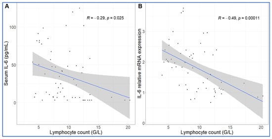 - Galván-Román, J.M.; Rodríguez-García, S.C.; Roy-Vallejo, E.; Marcos-Jiménez, A.; Sánchez-Alonso, S.; Fernández-Díaz, C.; Alcaraz-Serna, A.; Mateu-Albero, T.; Rodríguez-Cortes, P.; Sánchez-Cerrillo, I.; et al. IL-6 serum levels predict severity and response to tocilizumab in COVID-19: An observational study. J. Allergy Clin. Immunol. 2021, 147, 72–80.e8. [Google Scholar] [CrossRef]