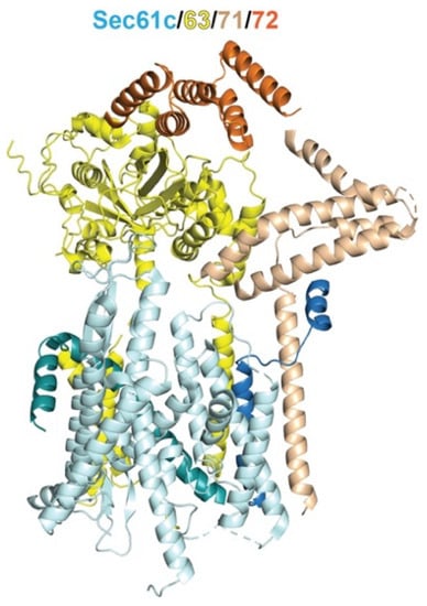 - Wu, X.; Cabanos, C.; Rapoport, T.A. Structure of the post-translational protein translocation machinery of the ER membrane. Nature 2018, 566, 136–139. [Google Scholar] [CrossRef] [PubMed]