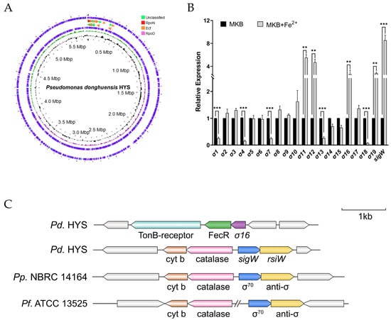 2.1. Response of ECF σ Factors to Extracellular Ferrous Iron in P. donghuensis HYS