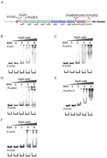 2.5. SigW Directly Regulates the Expression of the nfs Cluster