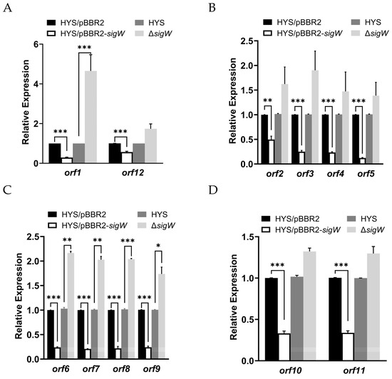 2.7. SigW Negatively Regulates the Gac/Rsm System to Inhibit 7-HT and Enhance Pyoverdine Production