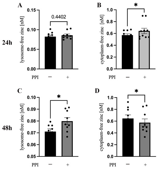 2.2. Effect of PPIs on the Distribution of Intracellular-Free Zinc