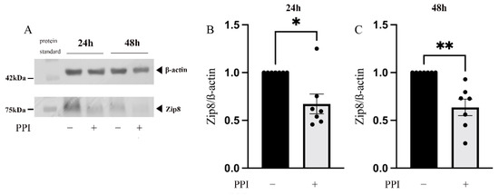 2.3. The Influence of PPIs on the Expression of Zip8