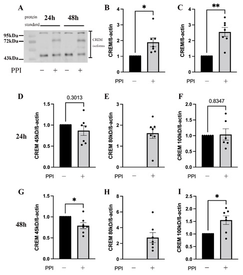 2.4. PPI Treatment Increased the Number of CREM Isoform