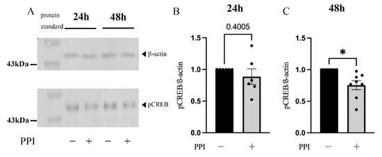 2.5. The Influence of PPIs on the Expression of pCREB