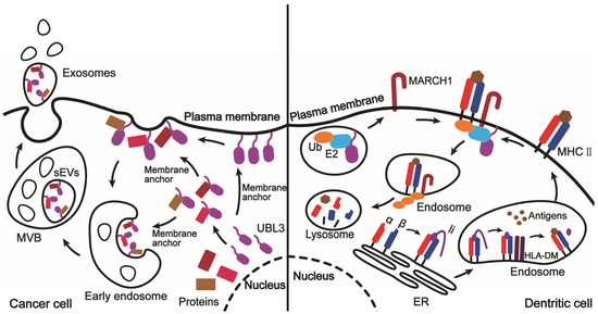 - Liu, H.; Wilson, K.R.; Firth, A.M.; Macri, C.; Schriek, P.; Blum, A.B.; Villar, J.; Wormald, S.; Shambrook, M.; Xu, B.; et al. Ubiquitin-like Protein 3 (UBL3) Is Required for MARCH Ubiquitination of Major Histocompatibility Complex Class II and CD86. Nat. Commun. 2022, 13, 1934. [Google Scholar] [CrossRef] [PubMed]