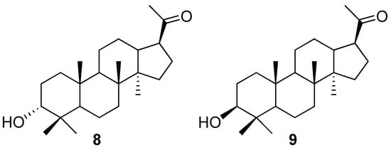 - Tanaka, R.; Matsuda, M.; Matsunaga, S. 3β-Hydroxyhexanordammaran-20-one from Euphorbia supina. Phytochemistry 1987, 26, 3365–3366. [Google Scholar] [CrossRef]