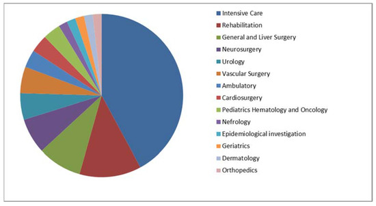 The origins (units) of the multidrug-resistant P. aeruginosa strains included in the study (n = 57).