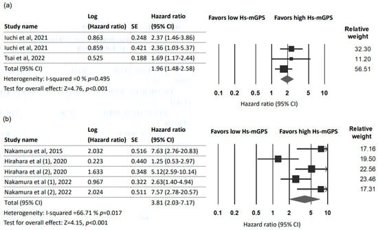 The staging system, an essential element of the cancer treatment strategy, nevertheless excludes individual factors. Clinicians explain to patients that individual factors account for the varying prognoses of patients who are at the same stage but with different prognoses. With this fact in mind, a simple, readily available, and reliable score system that can generate valuable prognostic data may serve as helpful treatment information for clinicians. The development of personalized treatment regimens is of vital importance; therefore, many studies have discovered better prognosis tools by focusing on a combination of a staging system with the immunological and nutritional status of the patient. The results of this meta-analysis summarized the existing evidence of the effectiveness of the HS-mGPS in survival prognosis and endorsed its prognostic value for cancer patients. However, several studies that we analyzed which compared the mGPS and the HS-mGPS indicated a higher prognostic value for the HS-mGPS [14,15,16]. Additional prospective studies are required to further investigate the prognostic effect of the two scores in cancer patients.