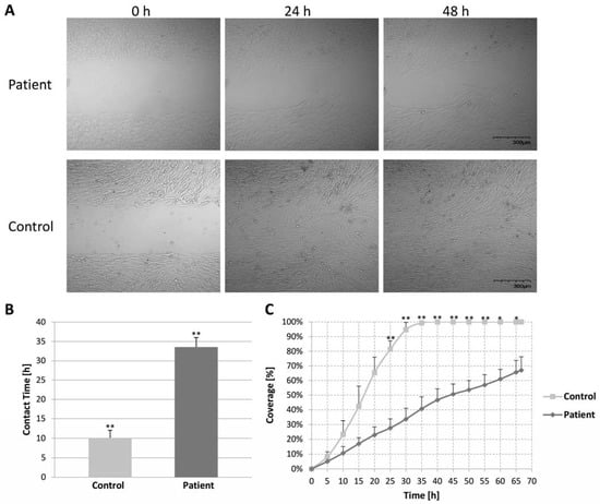 2.7. Migration Assay of Control and Patient Fibroblast Cells (Wound Healing Assay)