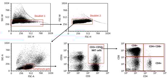 In contrast, the TCR of the type II NKT subset is more diverse and has a broader antigen specificity. At the same time, it could also interact with CD1d [12]. The type II subset is more frequent and is comprised of CD4⁺, CD8⁺, and CD4⁻CD8⁻ (double-negative (DN)) T cells [8]. Previous studies published the regulatory roles of the type II NKT cells, suggesting their potential role in maintaining immunological homeostasis by suppressing anti-tumor immunity [13,14].