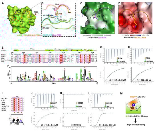 2.2. A Unique Cxx(D/E) Sequence in ASAP1-SH3 and K832 in the PxxP Motif of MICAL1-PRM Are Required for the High-Affinity Binding