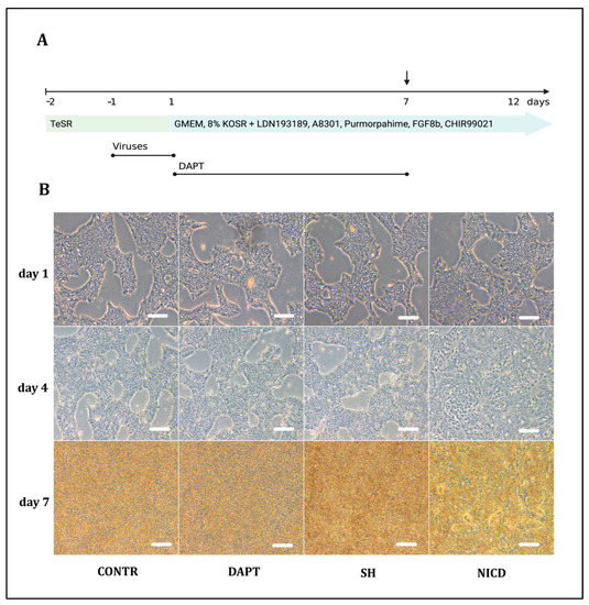 - Chambers, S.M.; Fasano, C.A.; Papapetrou, E.P.; Tomishima, M.; Sadelain, M.; Studer, L. Highly Efficient Neural Conversion of Human ES and IPS Cells by Dual Inhibition of SMAD Signaling. Nat. Biotechnol. 2009, 27, 275–280. [Google Scholar] [CrossRef] [PubMed]