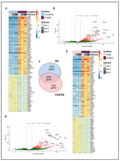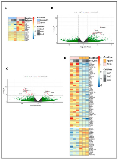 2.5. Differential Expression Analyses Showed Predominant Similarities of Control Differentiation (CONTR Group) and Differentiation with Inhibition of Notch Signaling (SH and DAPT Groups) and Significant Changes Compared with Differentiation under Activation of Notch Signaling (NICD Group)