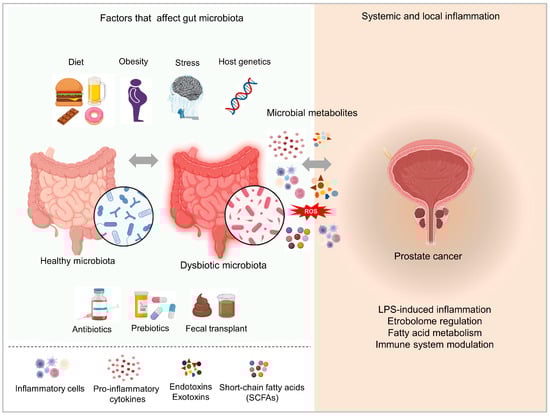 In recent years, diet and related obesity have been extensively investigated as important factors in increasing the risk of PCa. It is well known that diet and other lifestyle factors are able to modify the gut microbiome and, hence, influence numerous processes in the body.