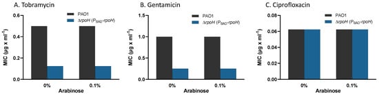 - Kindrachuk, K.N.; Fernandez, L.; Bains, M.; Hancock, R.E. Involvement of an ATP-dependent protease, PA0779/AsrA, in inducing heat shock in response to tobramycin in Pseudomonas aeruginosa. Antimicrob. Agents Chemother. 2011, 55, 1874–1882. [Google Scholar] [CrossRef]