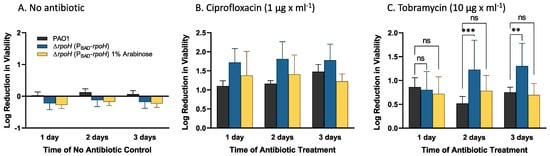 - Amini, S.; Hottes, A.K.; Smith, L.E.; Tavazoie, S. Fitness landscape of antibiotic tolerance in Pseudomonas aeruginosa biofilms. PLoS Pathog. 2011, 7, e1002298. [Google Scholar] [CrossRef] [PubMed]