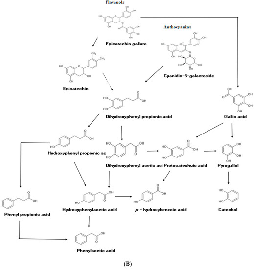 - Mosele, J.I.; Macià, A.; Motilva, M.-J. Metabolic and microbial modulation of the large intestine ecosystem by non-absorbed diet phenolic compounds: A review. Molecules 2015, 20, 17429–17468. [Google Scholar] [CrossRef] [PubMed]