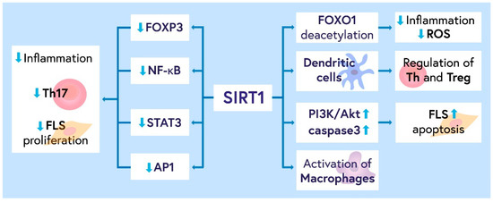 Future research should focus on elucidating the molecular pathways and targets controlled by SIRT1. This may provide a more precise and effective treatment tool for RA, limiting the adverse effects of therapy. The role of SIRT1 in RA, as an autoimmune disease, is schematically shown in Figure 1.