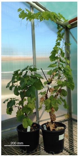 - Fernandes de Oliveira, A.; Nieddu, G. Vine growth and physiological performance of two red grape cultivars under natural and reduced UV solar radiation. Aust. J. Grape Wine Res. 2015, 22, 105–114. [Google Scholar] [CrossRef]
