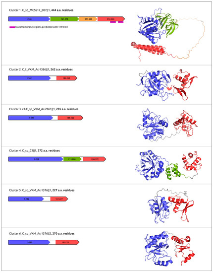 A domainal architecture and putative functional assignments of proteins and domains have been suggested using the results of HHpred and InterProScan [62] searches, and clarified using an analysis of the results of protein structural modelling (Figure 8).