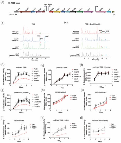 2.1. H3-T6SS Inhibits the Synthesis of PQS