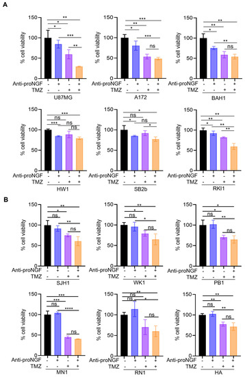 2.3. Targeting proNGF Inhibits GBM Cell Growth In Vitro