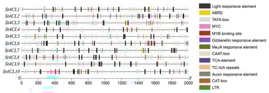 Analysis of cis-acting elements in the St4CL gene promoters. The genomic sequence 2000 bp upstream of the start codon was selected as the promoter for analysis.