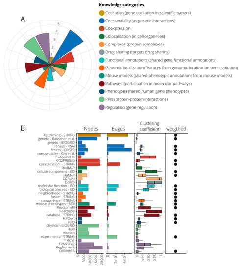 - Huang, J.K.; Carlin, D.E.; Yu, M.K.; Zhang, W.; Kreisberg, J.F.; Tamayo, P.; Ideker, T. Systematic Evaluation of Molecular Networks for Discovery of Disease Genes. Cell Syst. 2018, 6, 484–495.e5. [Google Scholar] [CrossRef] [PubMed]