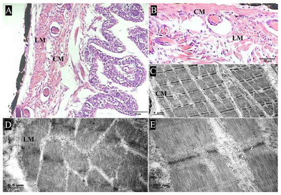 - Matheus, V.A.; Faccioli, C.K.; Chedid, R.A.; Senhorini, J.A.; Franceschini-Vicentini, I.B.; Vicentini, C.A. Morphological and histochemical features of the digestive tract of Leiarius marmoratus (Gill, 1870). J. Fish Biol. 2021, 99, 1622–1631. [Google Scholar] [CrossRef] [PubMed]