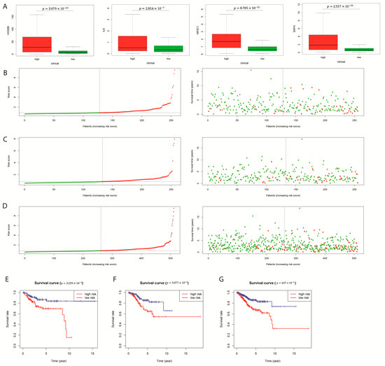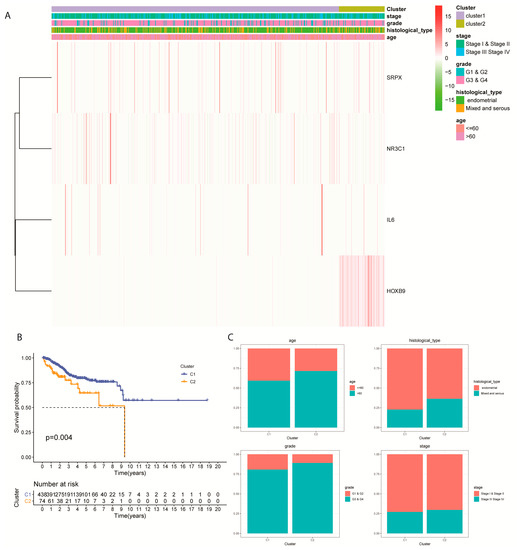 2.7. Expression Profile of Prognostic DEGs Clustered by Subtype and Clinical Factors