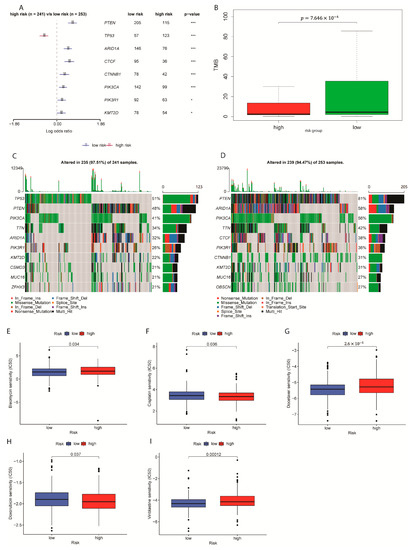 2.5. TMB Evaluation and Chemotherapeutic Sensitivity Analysis in Prognostic Risk Groups