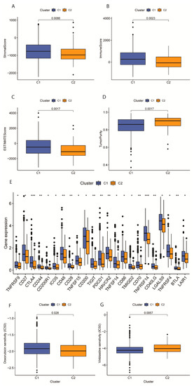 - Yoshihara, K.; Shahmoradgoli, M.; Martínez, E.; Vegesna, R.; Kim, H.; Torres-Garcia, W.; Treviño, V.; Shen, H.; Laird, P.W.; Levine, D.A.; et al. Inferring tumour purity and stromal and immune cell admixture from expression data. Nat. Commun. 2013, 4, 2612. [Google Scholar] [CrossRef]
