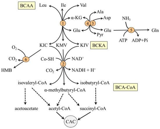 63. Holecek, M. The BCAA-BCKA cycle: Its relation to alanine and glutamine synthesis and protein balance. Nutrition 2001, 17, 70. [Google Scholar] [CrossRef]