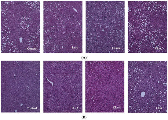 3.2. Effect of CLA Isomers on Liver Weight and Histology