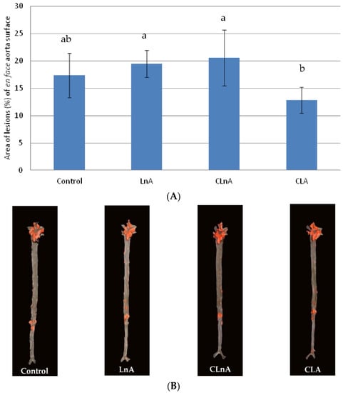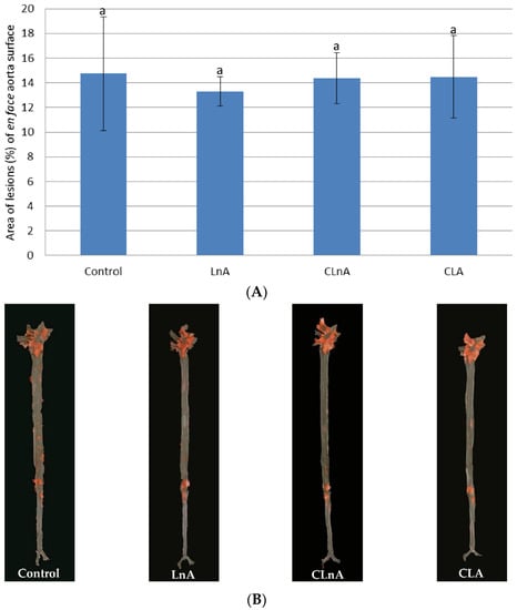 - Franczyk-Żarów, M.; Czyżyńska, I.; Drahun, A.; Maślak, E.; Chłopicki, S.; Kostogrys, R.B. Margarine supplemented with conjugated linolenic acid (CLnA) has no effect on atherosclerosis but alleviates the liver steatosis and affects the expression of lipid metabolism genes in apoE/LDLR−/− mice. Eur. J. Lipid Sci. Technol. 2015, 117, 589–600. [Google Scholar] [CrossRef]