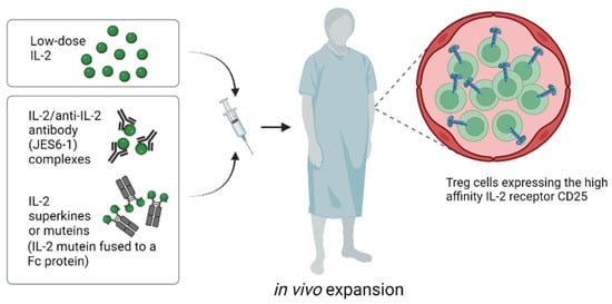 Approaches for in vivo expansion of Tregs (created with biorender.com).