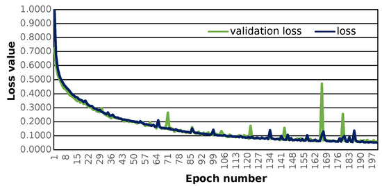 The prepared sequence-to-sequence model can construct semantically correct structures. The model was trained with the use of 121,000 structures. The applied loss function, i.e., the categorical cross-entropy [29] (see SM Equation (S6)) shows that training progresses well and the loss value converges to 0 (see Figure 1).