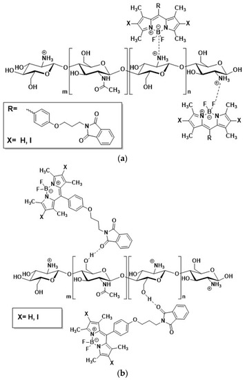 Two different BODIPY dyes were introduced into the chitosan matrix (Figure 1).