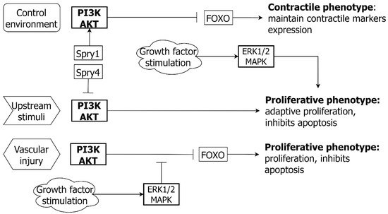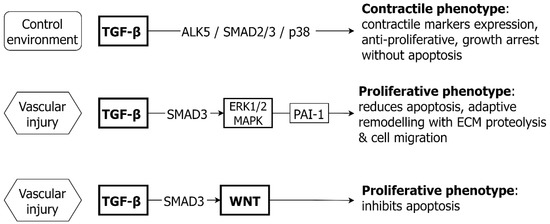 | Pathway | Promote contractile phenotype and survival | Promote proliferative response | Promote synthetic phenotype, apoptosis, proliferation, and migration | |||