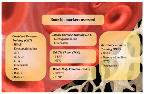Figure 2 graphically summarized the bone biomarkers proposed in the current literature to assess the effects of different exercise modalities.