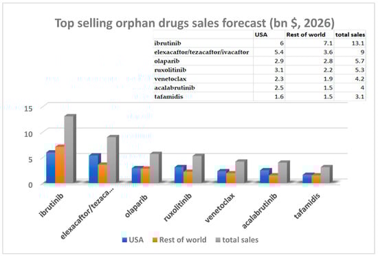 Top selling orphan drugs sales (bn $, forecasted sales for 2026) [14].