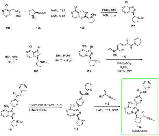 - Markham, A.; Dhillon, S. Acalabrutinib: First Global Approval. Drugs 2018, 78, 139–145. [Google Scholar] [CrossRef] [PubMed]