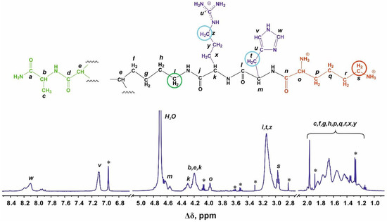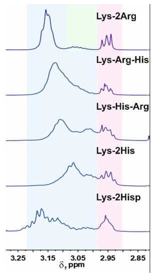 Sheveleva, N.N.; Tarasenko, I.I.; Vovk, M.A.; Mikhailova, M.E.; Neelov, I.M.; Markelov, D.A. NMR Studies of Two Lysine Based Dendrimers with Insertion of Similar Histidine-Arginine and Arginine-Histidine Spacers Having Different Properties for Application in Drug Delivery. Int. J. Mol. Sci. 2023, 24, 949. https://doi.org/10.3390/ijms24020949
