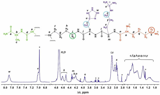- Sheveleva, N.N.; Markelov, D.A.; Vovk, M.A.; Tarasenko, I.I.; Mikhailova, M.E.; Ilyash, M.Y.; Neelov, I.M.; Lahderanta, E. Stable Deuterium Labeling of Histidine-Rich Lysine-Based Dendrimers. Molecules 2019, 24, 2481. [Google Scholar] [CrossRef] [PubMed]
