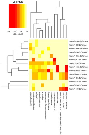 - Vlachos, I.S.; Zagganas, K.; Paraskevopoulou, M.D.; Georgakilas, G.; Karagkouni, D.; Vergoulis, T.; Dalamagas, T.; Hatzigeorgiou, A.G. DIANA-miRPath v3.0: Deciphering microRNA function with experimental support. Nucleic Acids Res. 2015, 43, W460–W466. [Google Scholar] [CrossRef]