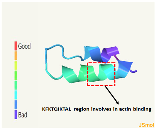 Although crystallo-graphic analysis of Imp has not yet been investigated, the use of a reliable computer program for protein folding analysis such as AlphaFold or Phyre2 could provide an overview of how the protein might fold. In order to compare the protein folding of Imp-PM19 and the ∆D3-Imp-PM19 mutant, we used the computer program Phyre2 [20] to predict protein folding. The result in Figure 7 shows that Imp can fold as an alpha-alpha superhelix. However, mutation of the actin binding region in the ∆D3-imp PM19 mutant did not alter the predicted protein folding. Thus, the loss of actin binding ability in the ∆D3-Imp-PM19 mutant may not be due to altered protein folding.
