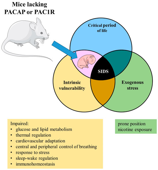 In relation to the reviewed literature data (Table 1) and the overlaps between human SIDS research data, we believe that PACAP or PAC1R deficiency acts as an intrinsic vulnerability that might interact with exogenous trigger events to increase susceptibility to infant death.