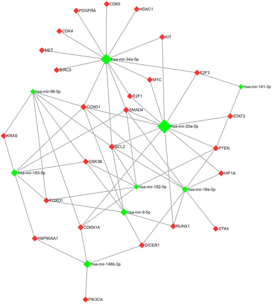 | miR-34a | hematopoiesis | 0.027 | ATG5, AXL, BAX, BCL2, CDK6, CSF1R, DLL1, ERBB2, FOS, FOXP1, HDAC1, HMGB1, IFNB1, JAG1, KIT, KLF4, LEF1, MYB, MYC, NOTCH1, NOTCH2, SIRT1, TCF7, TP53, TREM2, WNT1, ZAP70 |
