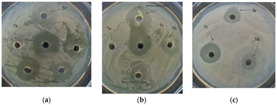 Compounds 5c, 5e, 7b, and 7c could be arranged into a group exhibiting a more potent ability to combat bacterial pathogens under study (Table S3, Figure 10).